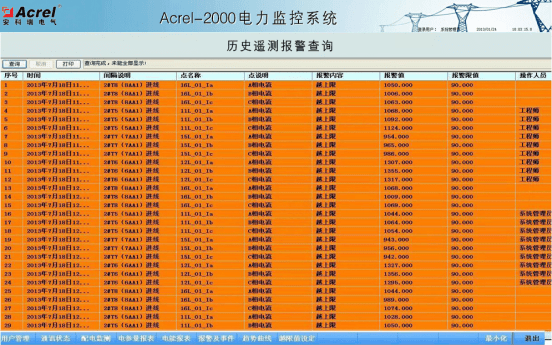 电参量监控系统将遥测越限、正常遥信变位、事故变位、SOE、保护信息、遥控记录、操作记录等信息集中统一管理,激发事件记录分类别进行记录。重要报警信息,如事故报警、保护动作等随时弹出文字显示、即时打印,并语音通知。