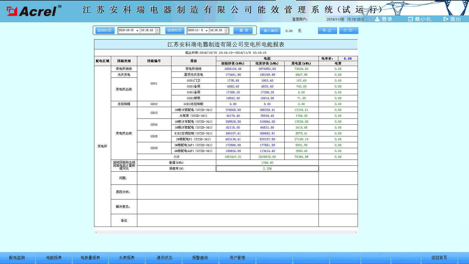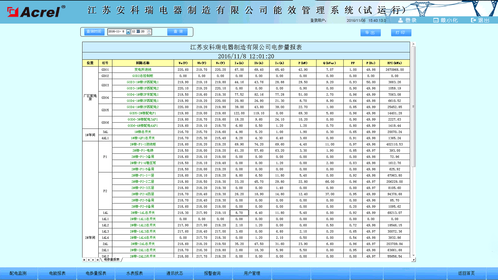 能耗管理系统提供灵活的报表生成工具,根据运行要求自动生成各种报表:时报表、日报表、周报表、月报表、季报表、年报表,包括电流、电压、功率、频率、电度以及各种和乐鱼官网首页入口、差等代数计算的结果值。对各类报表均可召唤打印。